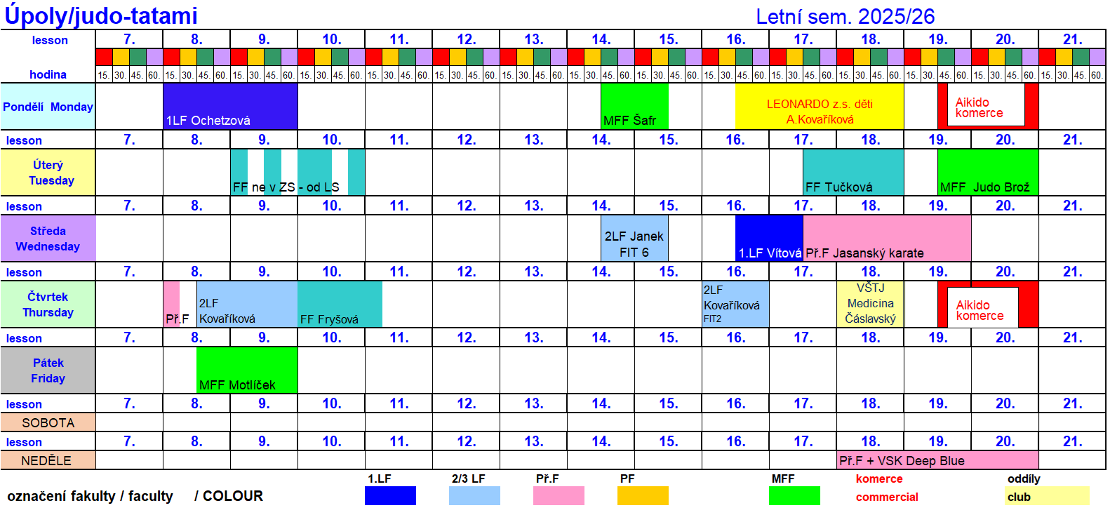 Rozvrh sál úpoly